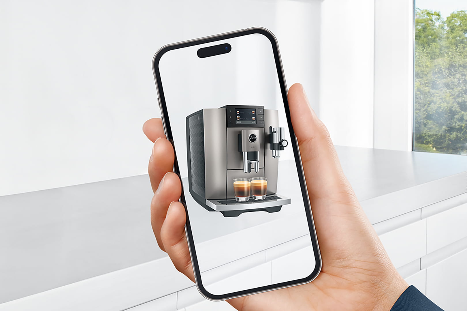 Schauen Sie sich die E8 im 3D-Modell an und erleben Sie die Kaffeemaschine virtuell in Ihren Räumen.