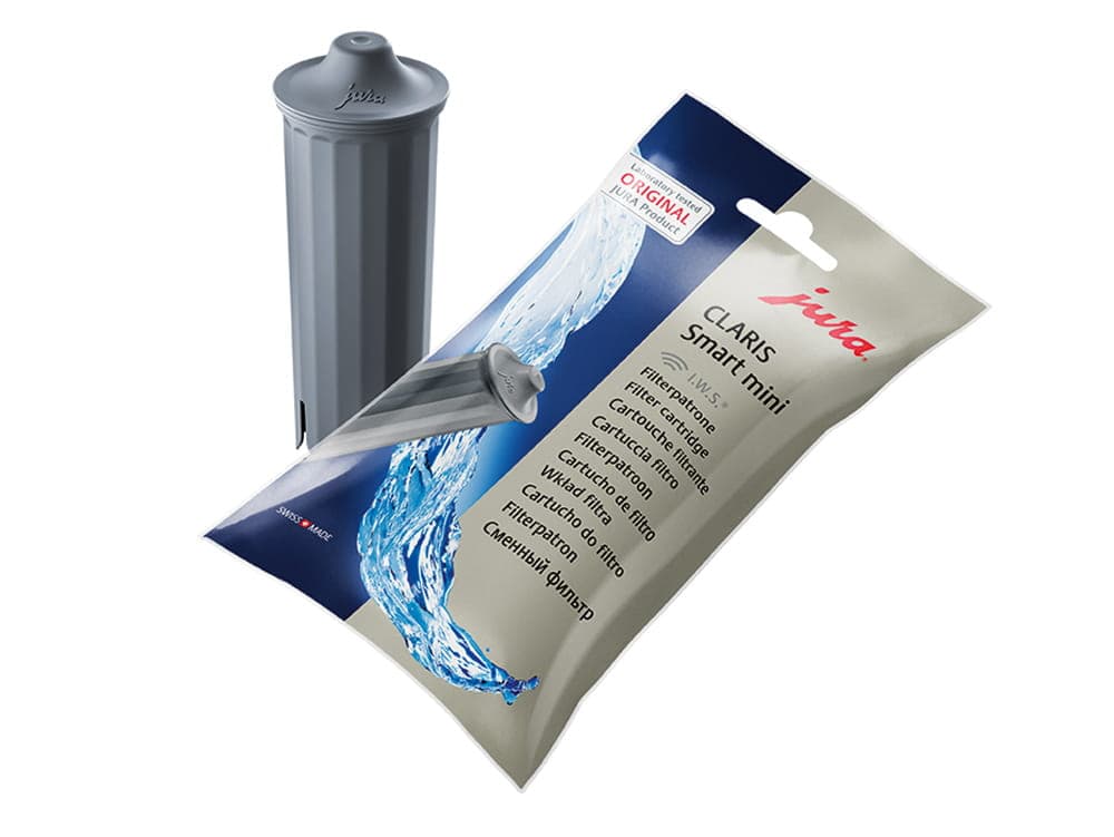 Kaffee besteht zu 98 Prozent aus Wasser. Entsprechend elementar ist dessen perfekte Qualität für ein vollendetes Kaffeeergebnis. Mit CLARIS Smart mini revolutioniert JURA die Wasserfiltration. Erstmals kommuniziert nämlich ein Vollautomat* dank moderner RFID-Technologie (RFID = Radio-frequency Identification) permanent mit dem Filter. Er erkennt, ob ein Filter eingesetzt ist und aktiviert automatisch den entsprechenden Modus. Laufend sammelt er Informationen zur Filternutzung und meldet, wenn die Kapazität erschöpft ist. Dadurch gestaltet sich nicht bloß der Filterwechsel so einfach wie nie, CLARIS Smart mini kann auch seine Wirksamkeit ideal entfalten.