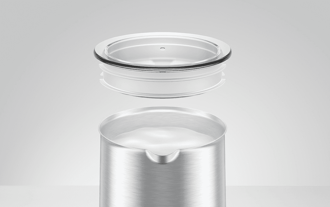 Mit einem Durchmesser von 13 cm und einer Höhe von 21 cm präsentiert sich der Milchschäumer Hot & Cold platzsparend und kompakt. Er fügt sich harmonisch in jede Kücheneinrichtung ein und ergänzt Pure-Coffee-Vollautomaten von JURA stilvoll. Dank pflegeleichter Materialien wie Edelstahl und der abgerundeten Formen lässt sich der Behälter einfach reinigen.