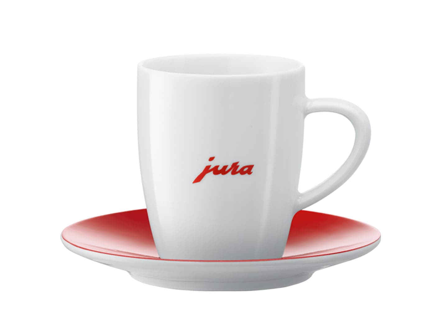 Setzen Sie Ihre Kaffeespezialität mit der in edlem JURA-Design gehaltenen, gebrandeten Kaffee-Tasse und dem passenden roten Unterteller optimal in Szene. Das exklusiv für JURA entworfene Set à 2 Tassen macht das Kaffeetrinken auch optisch zum Genuss.