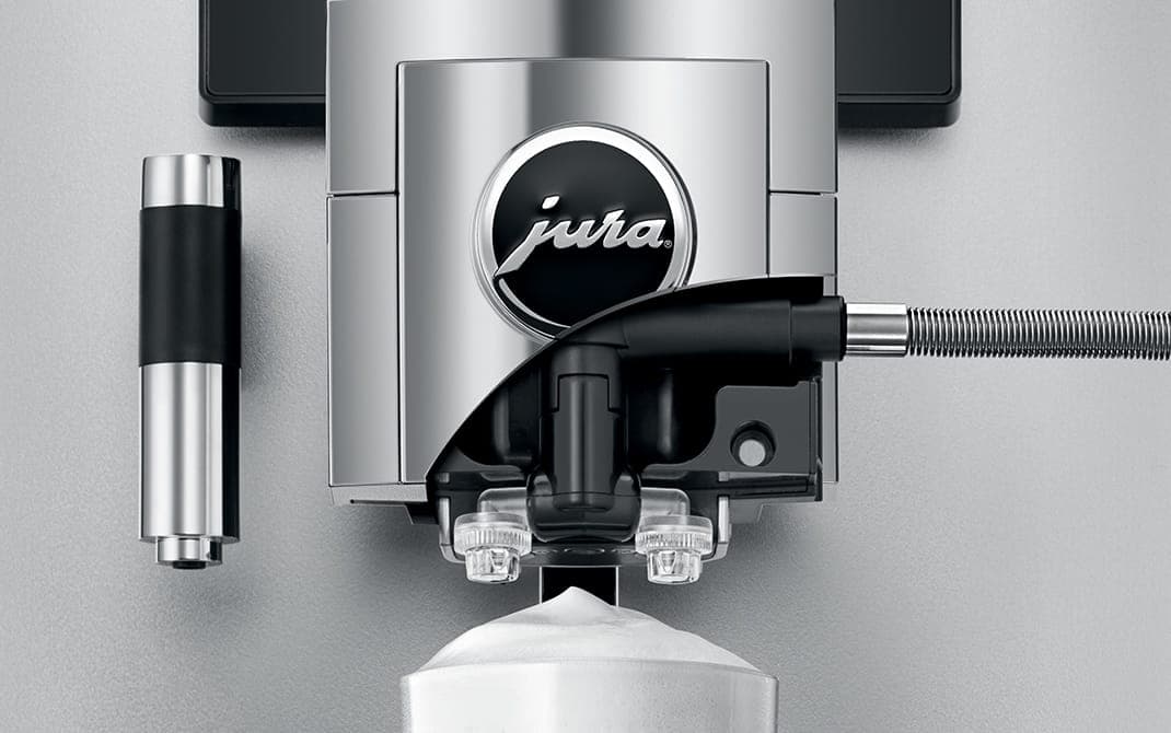 Genauso intuitiv wie die Bedienung funktioniert die Pflege der X10. Integrierte Spül- und Reinigungsprogramme sorgen, in Kombination mit Original-Pflegeprodukten von JURA, für TÜV-zertifizierte Hygiene und Sauberkeit. Sogar die Milchsystem-Reinigung der X10 ist automatisiert und funktioniert auf Knopfdruck. Der massive Kombiauslauf lässt sich mit wenigen Handgriffen zerlegen. Die darin vorn angeordneten Milchausläufe sind bequem zugänglich und können bei Bedarf ganz einfach ersetzt werden.
