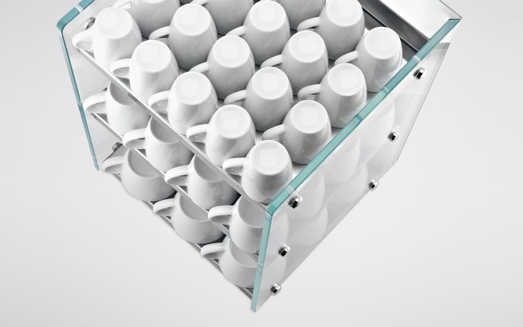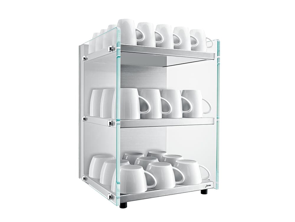Mit drei Ablageflächen bietet der Tassenwärmer Platz für 60 Kaffeetassen (Ø 80 mm) oder 100 Espressotassen (Ø 60 mm). Er ist ideal für ein Umfeld mit einem hohen Kaffeebedarf.