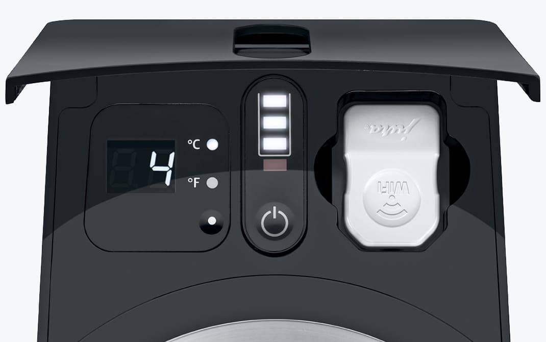 Le remplissage facile et direct du lait, sans avoir à retirer le récipient à lait, l’indicateur numérique de température et le couvercle en aluminium insérable parfaitement adapté au récipient sont autant d’atouts qui assurent un maniement particulièrement simple et un confort d’utilisation absolu.