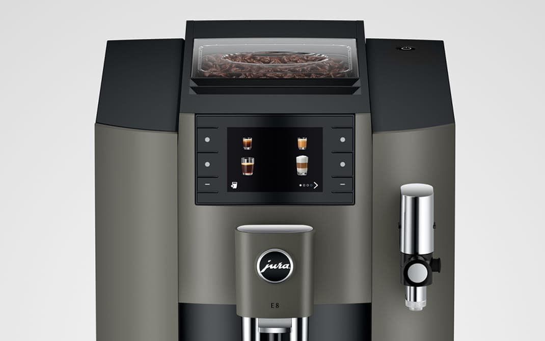 Lors de son processus de développement, JURA accorde une attention particulière au design. Reconnaissable au premier regard, l’E8 se distingue par des détails ciselés avec le plus grand soin, des matériaux haut de gamme et une finition précise. Son allure moderne et élancée est marquée par des lignes d’une harmonieuse symétrie. Des formes nettes et épurées, rehaussées d’accents portés par touches ciblées, lui confèrent structure et personnalité. Toute l’esthétique de l’E8 a été pensée pour conserver une tonalité fraîche et moderne au fil des années.